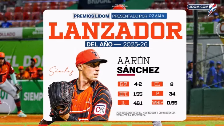 El derecho Aaron Sánchez, de los Toros del Este, fue elegido Lanzador del Año del campeonato 2025-2026 de la Liga de Béisbol Profesional de la República Dominicana (LIDOM), tras encabezar la votación realizada por un jurado nacional de comunicadores especializados.
