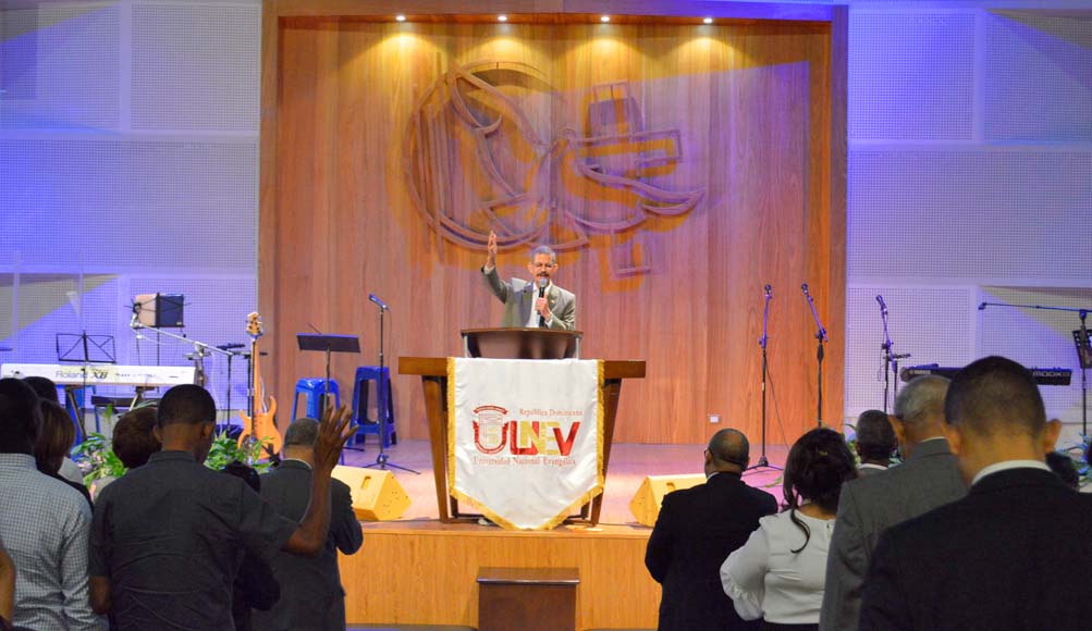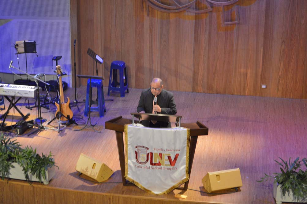 El encuentro fue encabezado por el rector de la universidad, Ing. Epifanio González Minaya; Santa Guzmán, M.A Vicerrectora Académica; Dr. Rafael Reyes, Vicerrector Administrativo; Lcdo. Salustiano Mojica Rijo, Presidente de la Fundación Evangélica Universitaria (FEU), quien tuvo a su cargo la invocación y reflexión del acto.