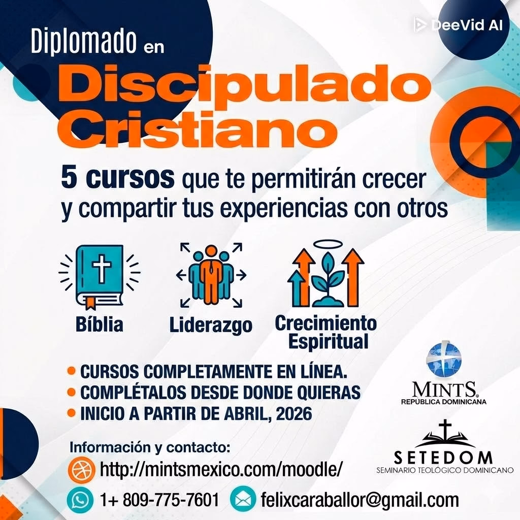 El Seminario Teológico Dominicano (SET EDOM), en colaboración con MINTS República Dominicana, anuncia la apertura en abril en modalidad virtual del Diplomado en Discipulado Cristiano 2026, un programa académico diseñado para pastores, maestros y líderes que buscan fortalecer la misión de «ser y hacer discípulos» en la iglesia local.