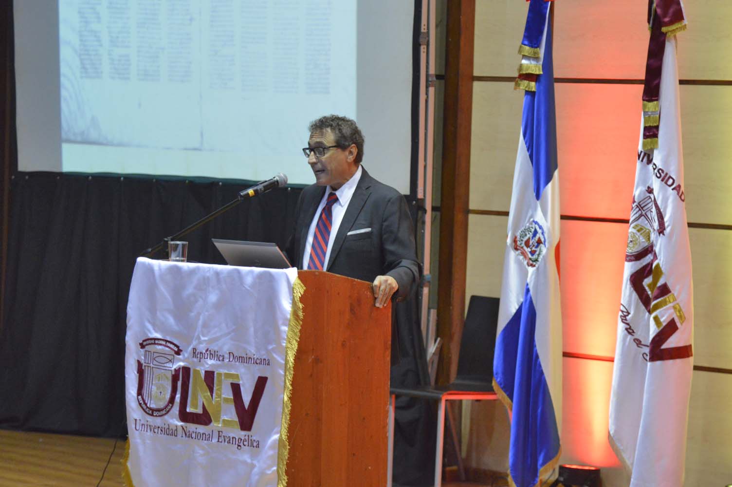 En el encuentro hablo el rector de la academia, ingeniero Epifanio González Minaya, quien sostuvo que en celebración de 33 aniversarios, la UNEV ratifica y reitera el compromiso con la comunidad de creyentes, y su papel esencial de ser “brazo académico” de las Iglesias cristianas, mediante el conocimiento de la Biblia que es la base de nuestra Fe.