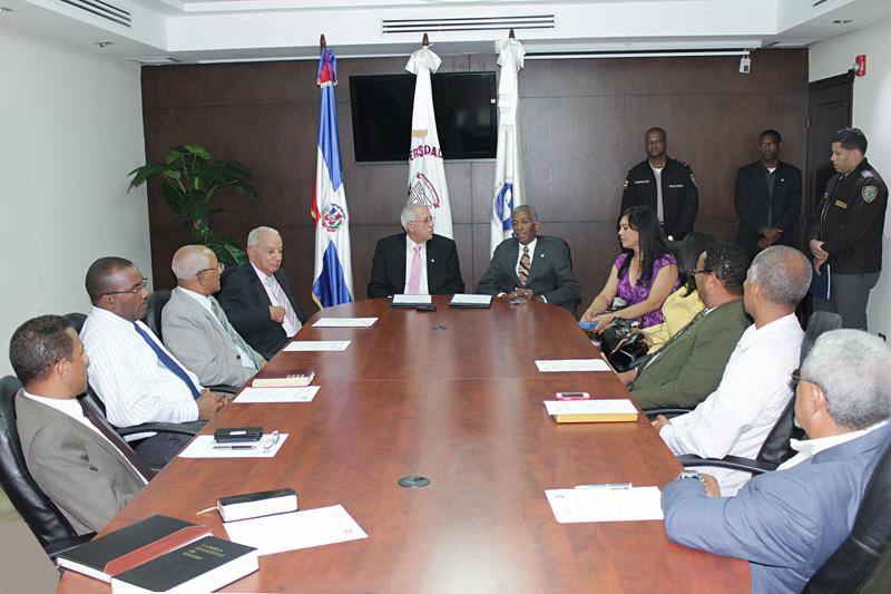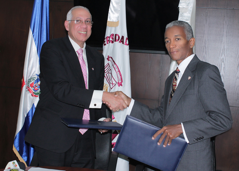 El convenio fue suscrito en el recinto Santo Domingo del Miraflores en presencia de los miembros del Consejo Universitario, representado por el doctor Pedro Ramón Gómez, Presidente de la Fundación Evangélica Universitaria(FEU), el vicerrector académico Félix Miguel Ureña, el Vice-rector de Investigación y Post-Grado , David Terrero, el Decano de Extensión, Roberto Lebrón, Santa Guzmán, Decana de Humanidades, Ingeniero Víctor Espaillat, Decano de Asuntos Haitianos, Marino Peñaló, Director del Recinto Villa Altagracia, Julio Merecedez, director de la Escuela de Ciencias Empresariales, entre otros funcionarios del CND.
